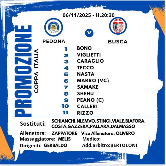 Dopo la deludente sconfitta di domenica, il Pedona torna in campo con determinazione e conquista una vittoria importante nella sfida di Coppa Italia contro il Busca, disputata questa sera. Il match è stato intenso e combattuto, tanto da richiedere i tempi supplementari per decretare il vincitore.