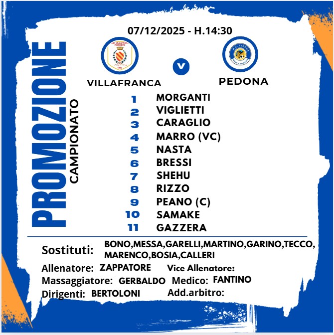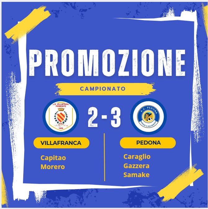 Il Pedona conquista un prezioso successo esterno, tornando da Villafranca con tre punti fondamentali che permettono di restare agganciati alla vetta della classifica. La squadra di Zappatore parte forte e al 7’ trova subito il vantaggio grazie a Caraglio, ben servito da Gazzera. Al 30’ arriva la risposta dei padroni di casa con Capitao, mentre nell’occasione il portiere Morganti è costretto ad abbandonare il campo per infortunio, sostituito da Bono.