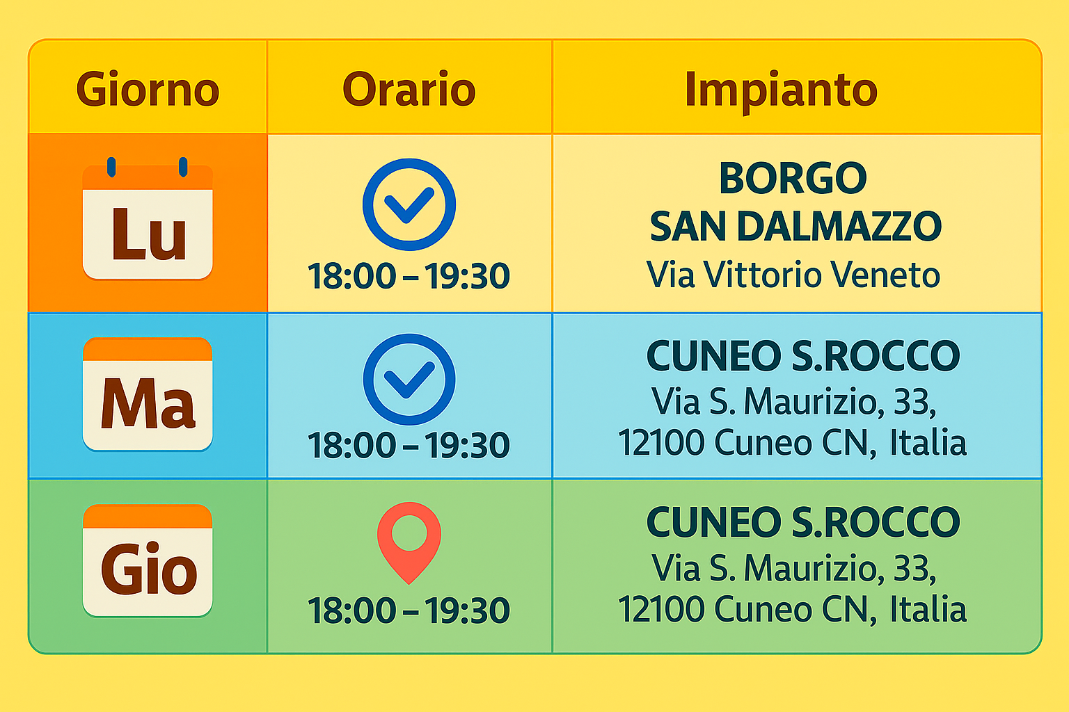 GIORNO E ORARI UFFICIALI