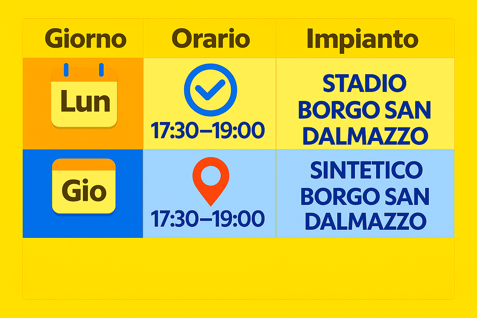GIORNO E ORARI UFFICIALI